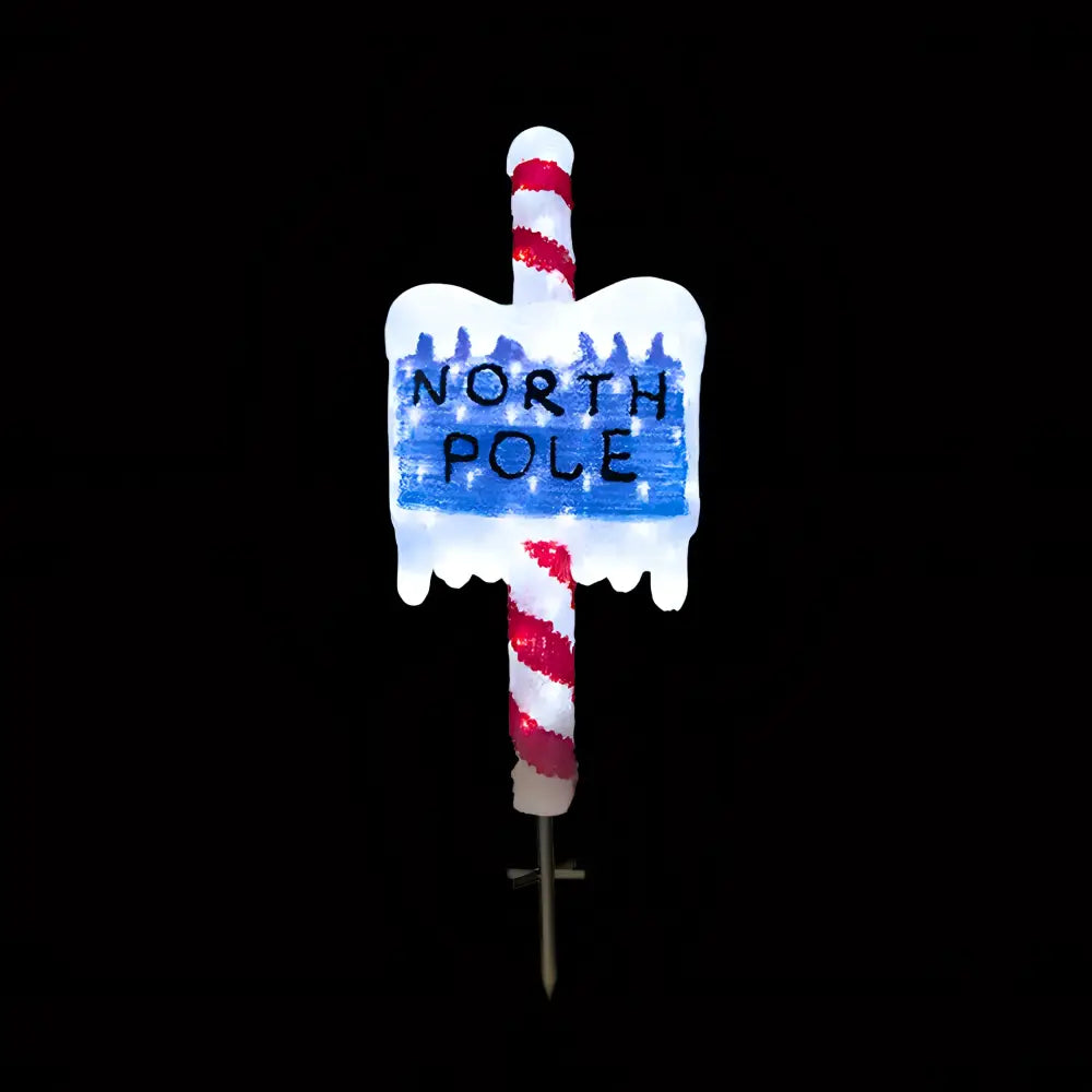 Acrylic North Pole Sign w/ Metal Floor Sticker - H100cm