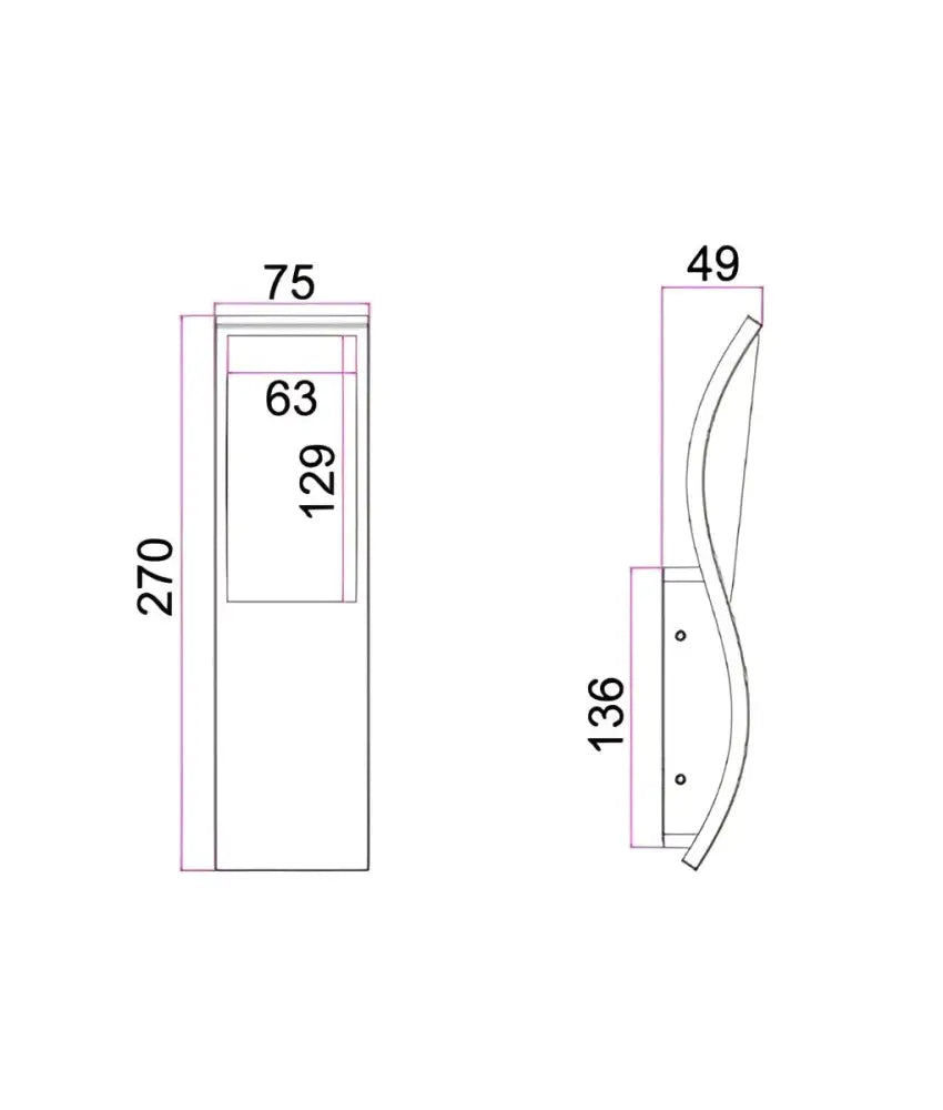 OLA Exterior LED Wavy Rectangular Wall Light Dark Grey 7W 3000K IP65 - OLA01