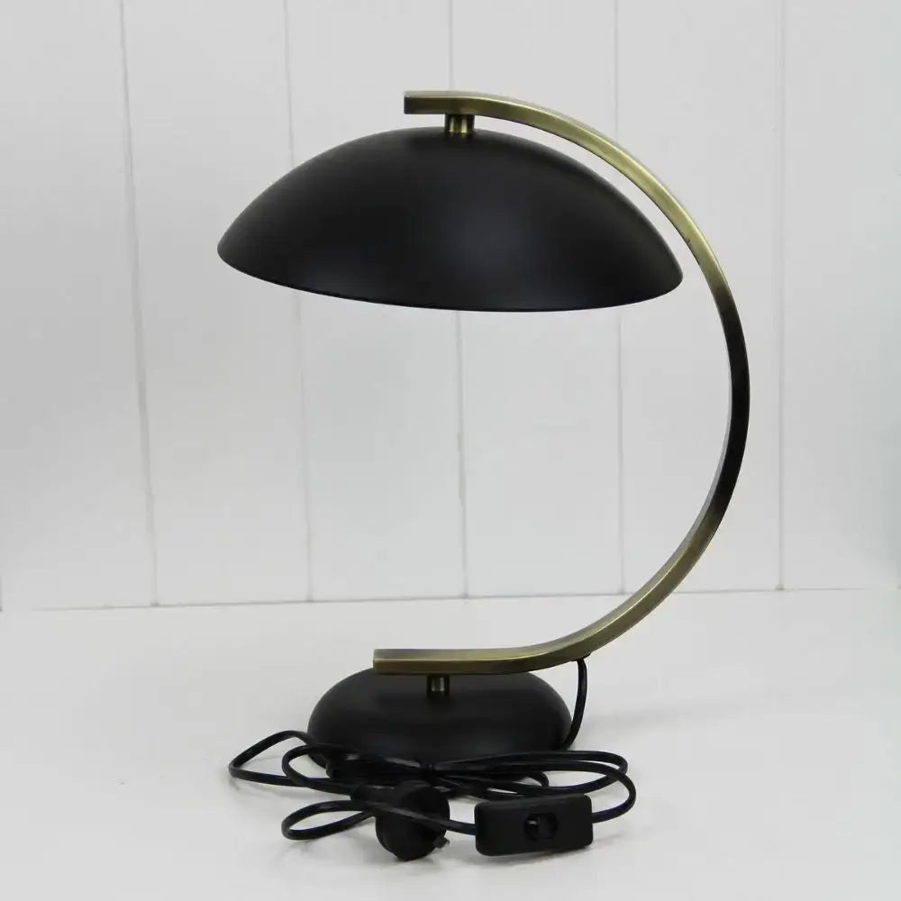 The Deco is a classic table lamp from Oriel with its simple design lamp combines matt black metalwork with antique brass features beautifully. The table lamp would be a great addition to a bedside table or on a desk.
