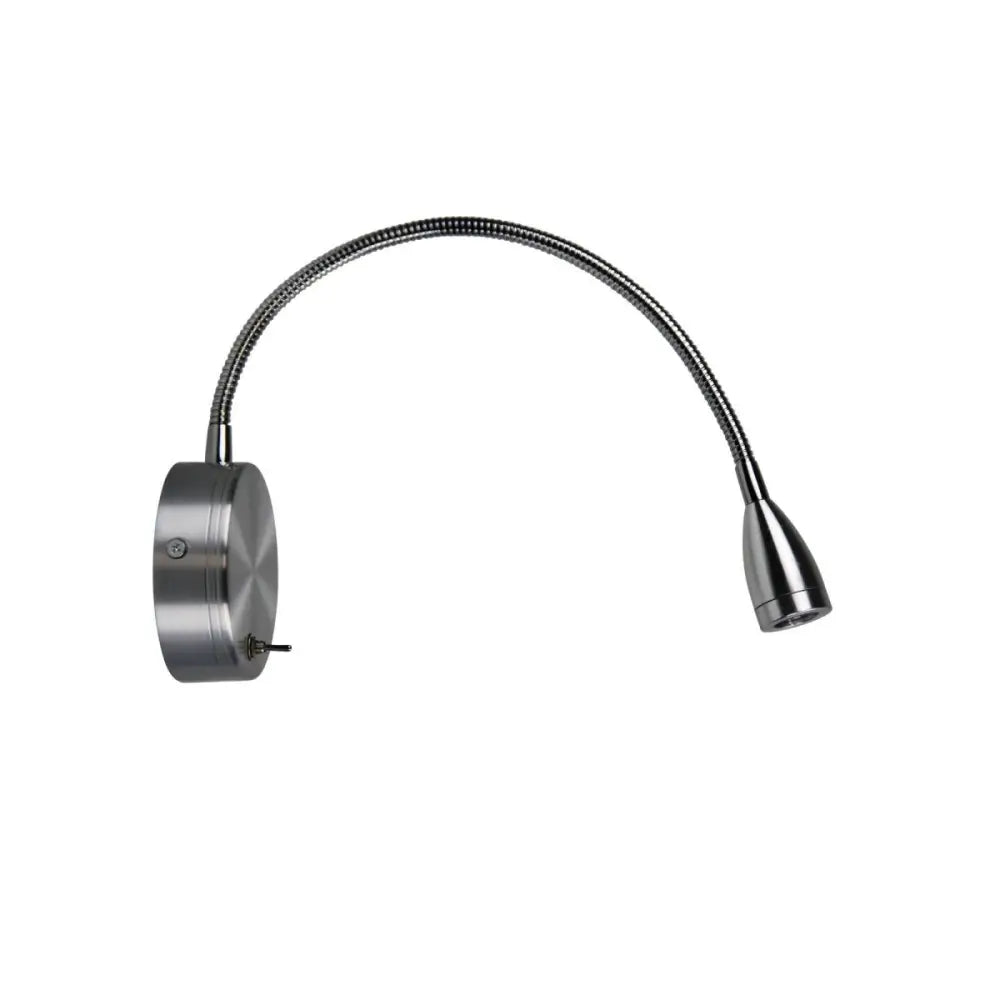 The Flexi switched wall light from Oriel is finished in Matt Black, Brushed Aluminium or White, complete with an inbuilt, quality 3 Watt COB LED. The Wall Light has a fully adjustable ‘goose-neck’ and small toggle switch on the wall plate, making it an ideal light for bedside use.