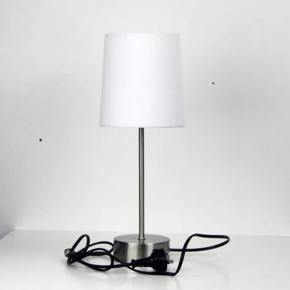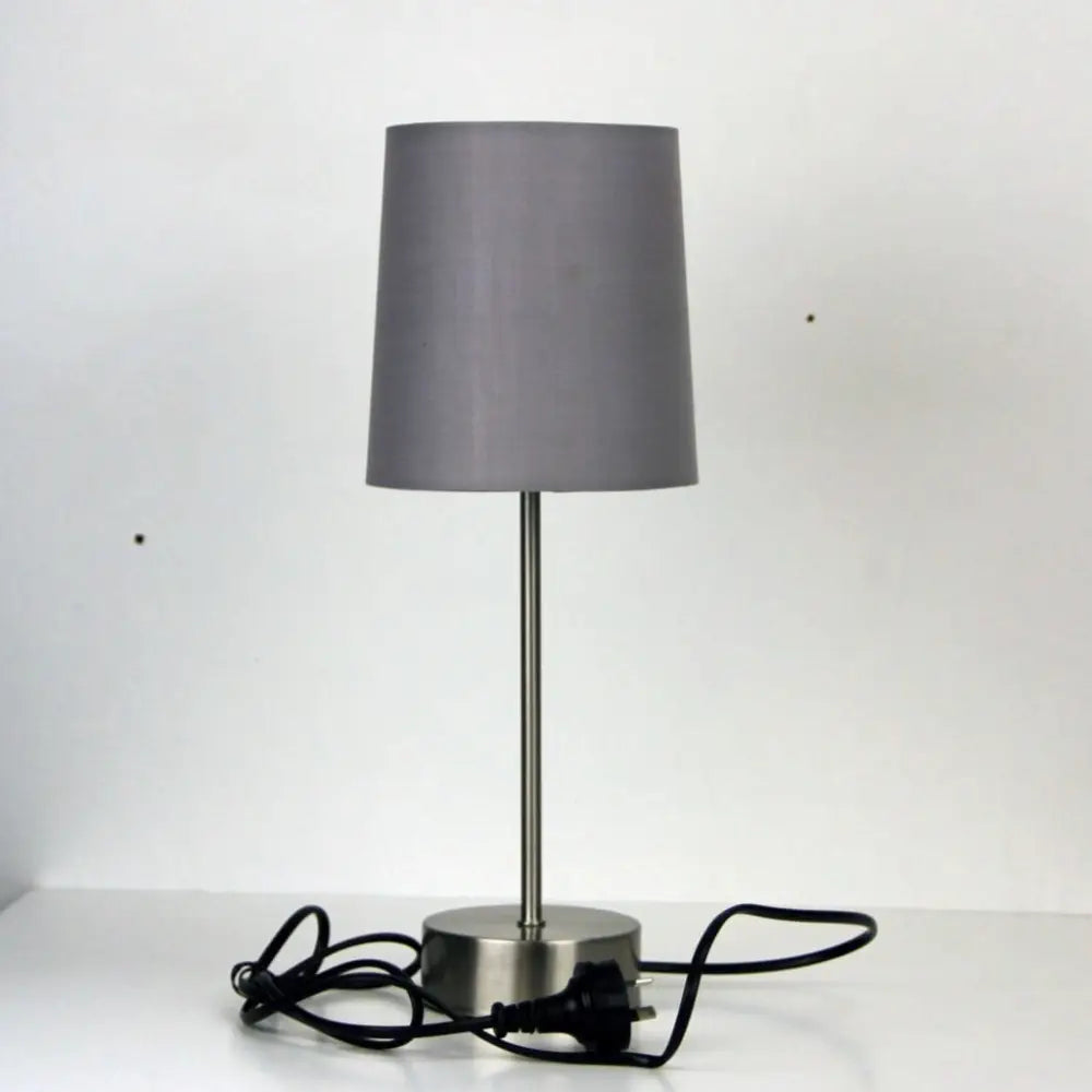 The Lancet On/Off touch base from Oriel is available in Brushed Chrome with a coloured poly-cotton fabric shade. It is the perfect addition to any bedside table.