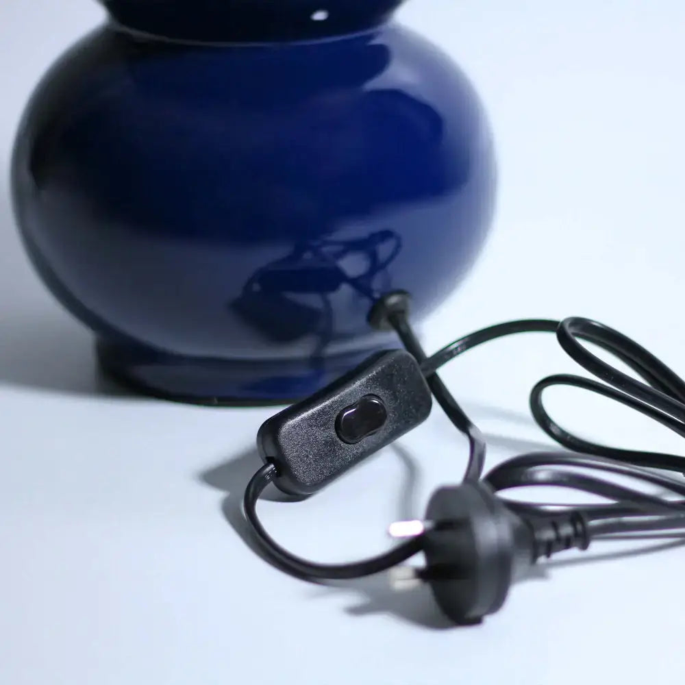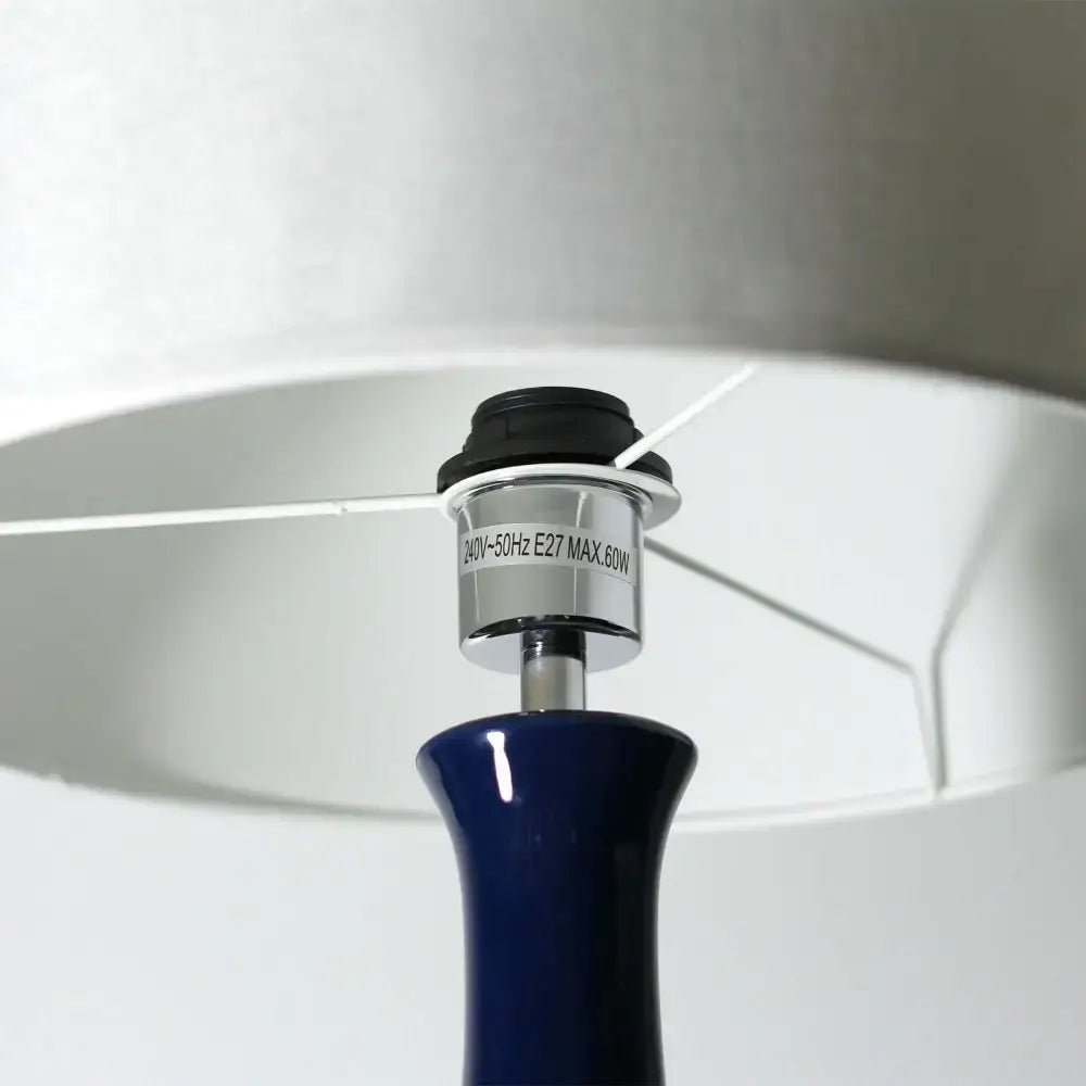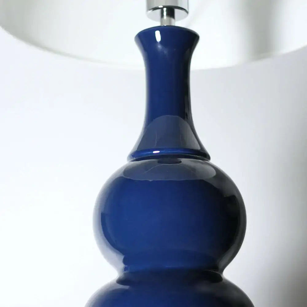 The matte-white shade allows light to shoot above adjacent ceiling and walls, while the light below highlights the colourful ceramic base, creating complimentary shadows along with its rounded features. There are various colours, including a deep blue, pale green, deep red and striking white gloss finish.