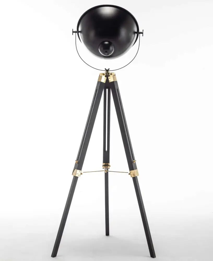 Introduce a touch of sophisticated, functional art to your space with the Premium Tripod Spotlight Lamp. This nautical-inspired designer floor lamp features a distinctive matte black finish with a contrasting gold interior, offering a blend of classic style and modern flair. Its tripod design, crafted from pine wood and iron, not only adds stability but also enhances its aesthetic appeal.
