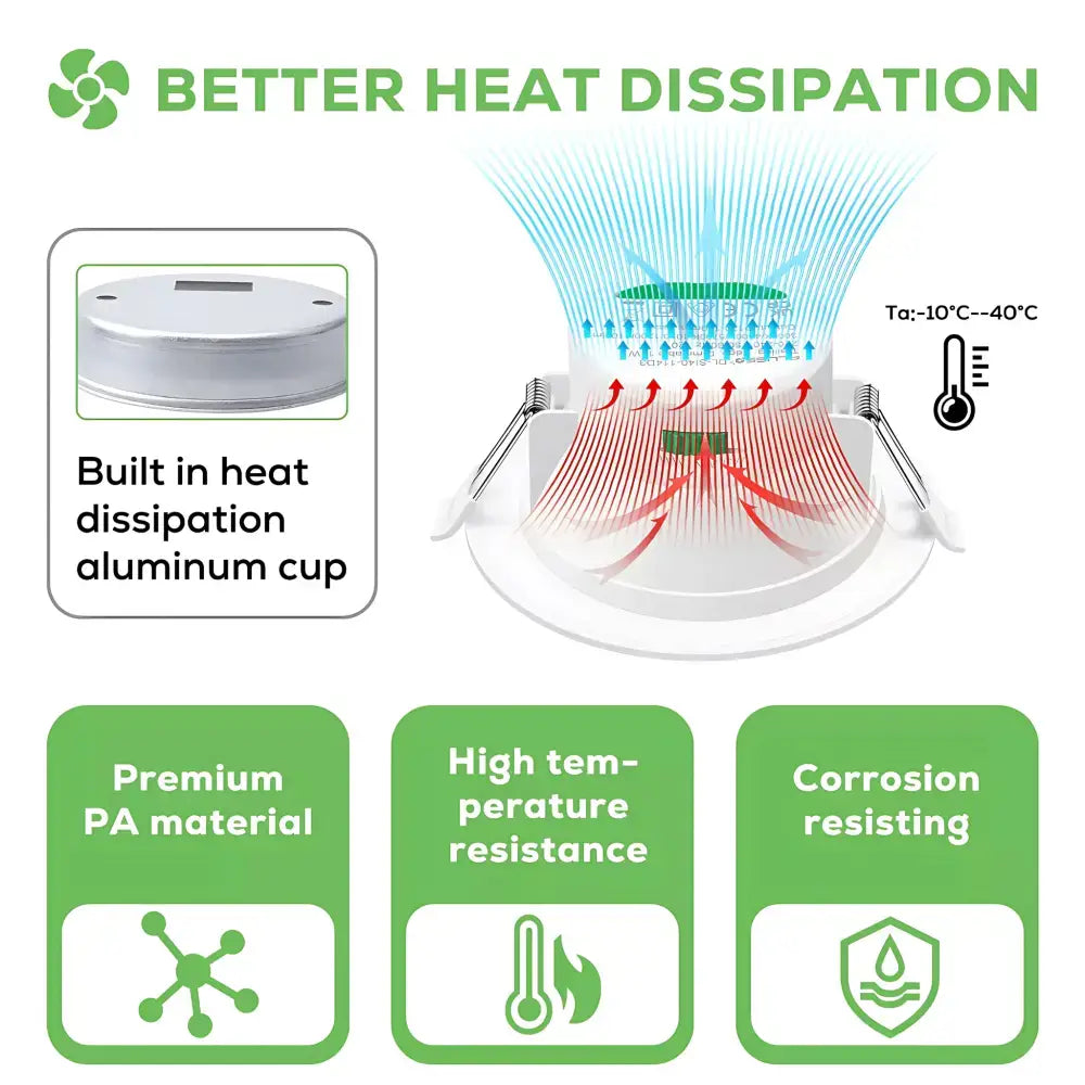 - Tri-Colour Selectable Technology: Easily switch between warm white (3000K), cool white (4000K), and daylight (5700K) with the flick of a switch.