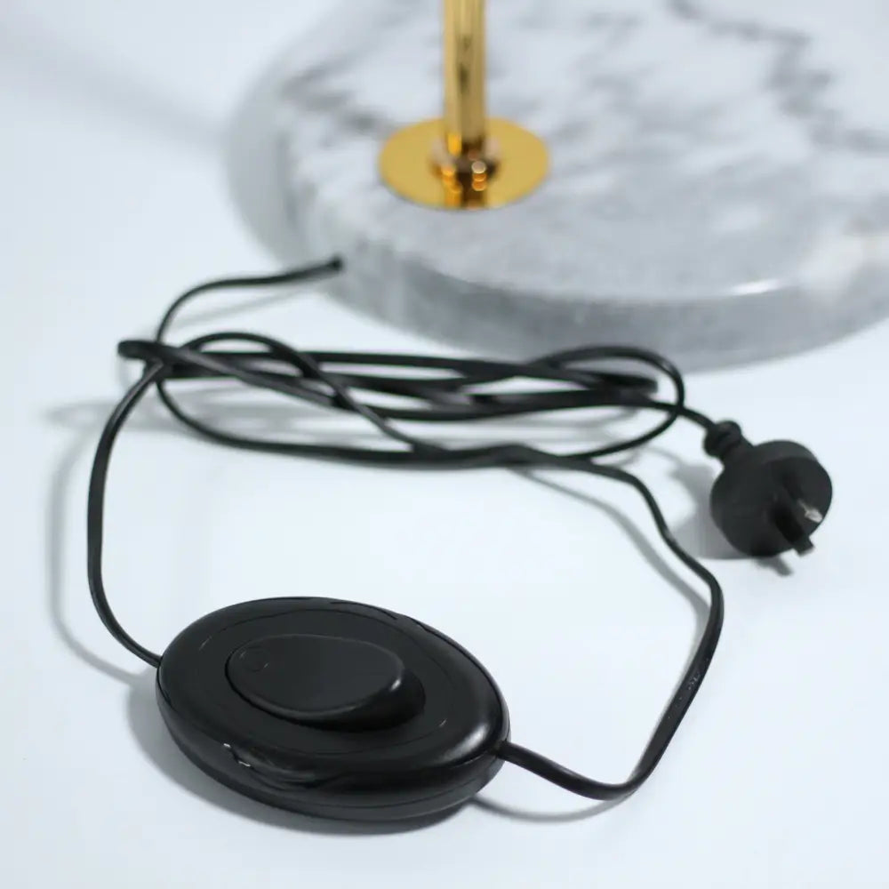 The Rieka Floor Lamp stands 162cm tall and has a striking gold stand that will stand out in any room, while the Rieka Table Lamp has a more humble black stand. The solid marble base gives the necessary stability whilst providing an excellent natural-looking base, and the lamp’s cord has an inline switch.