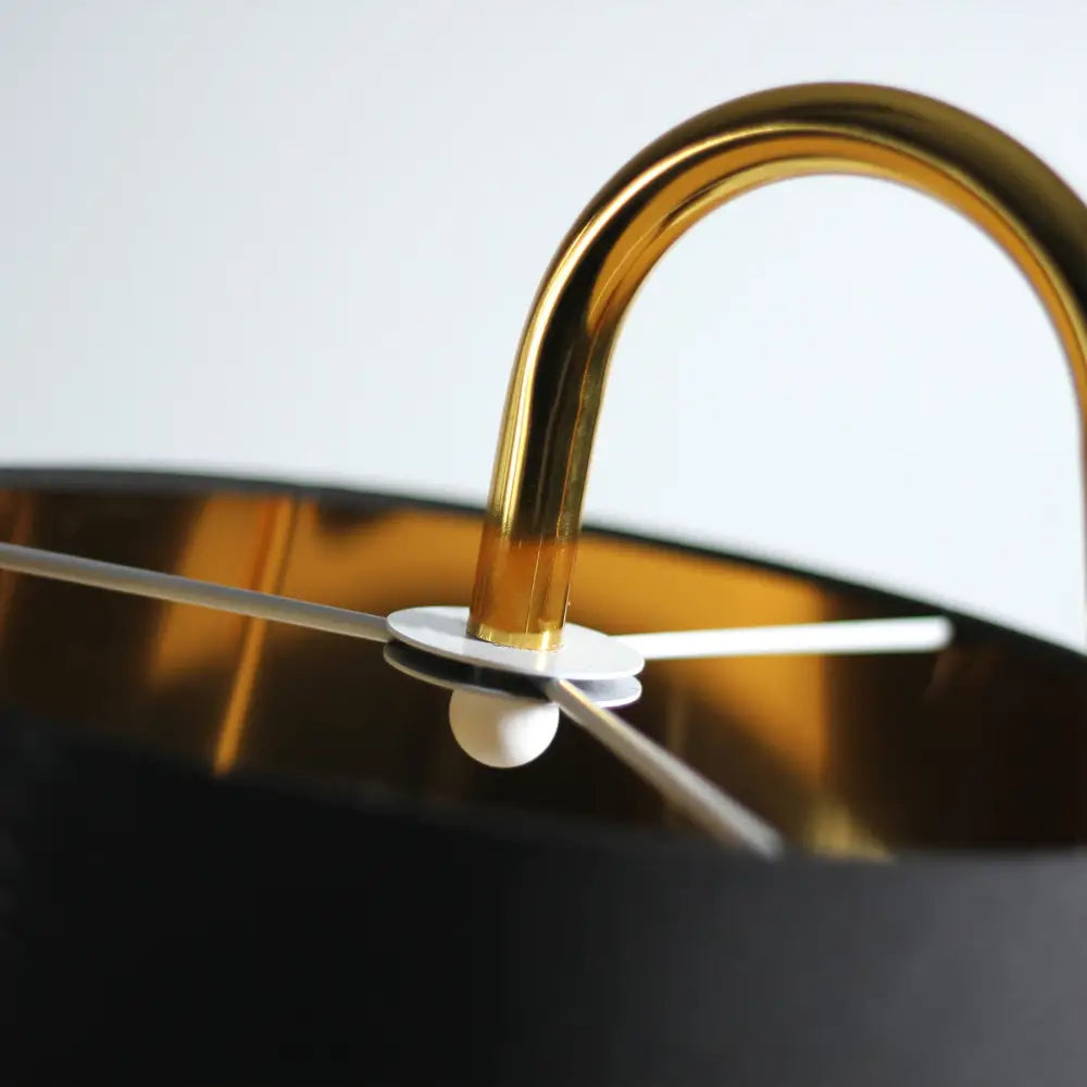 The Rieka Range is stylish, sleek and brings sophistication to a room. The lampshade is beautiful, with the black fabric exterior combining faultlessly with the shiny gold interior. The solid lamp stand runs within the lampshade, offering a unique touch whilst returning on itself towards the bulb holder.