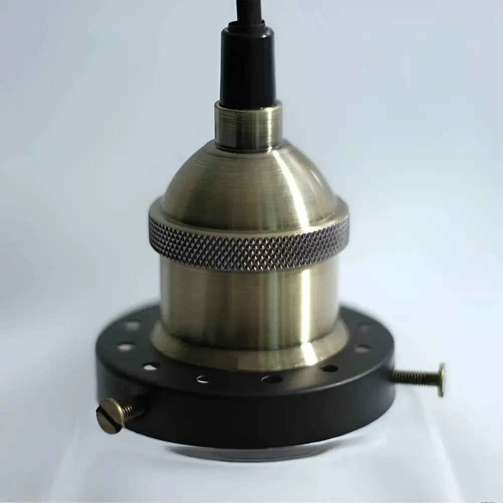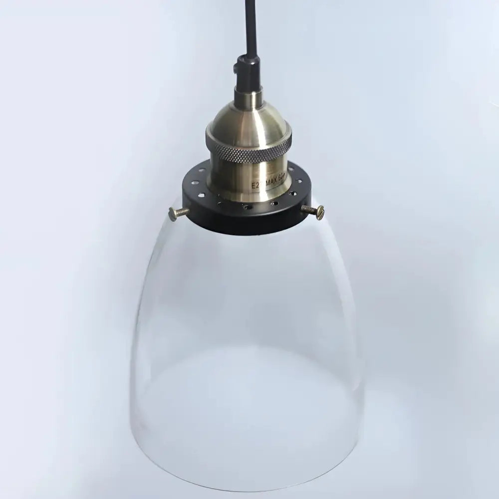 The Rosa light series offers a single and triple pendant light configuration. Each light features a unique industrial feel, with an antique brass, brushed aluminium body and base. The body features a knurled metal upper ring and a black base with prominent locking screws that fasten the transparent glass cup cover.