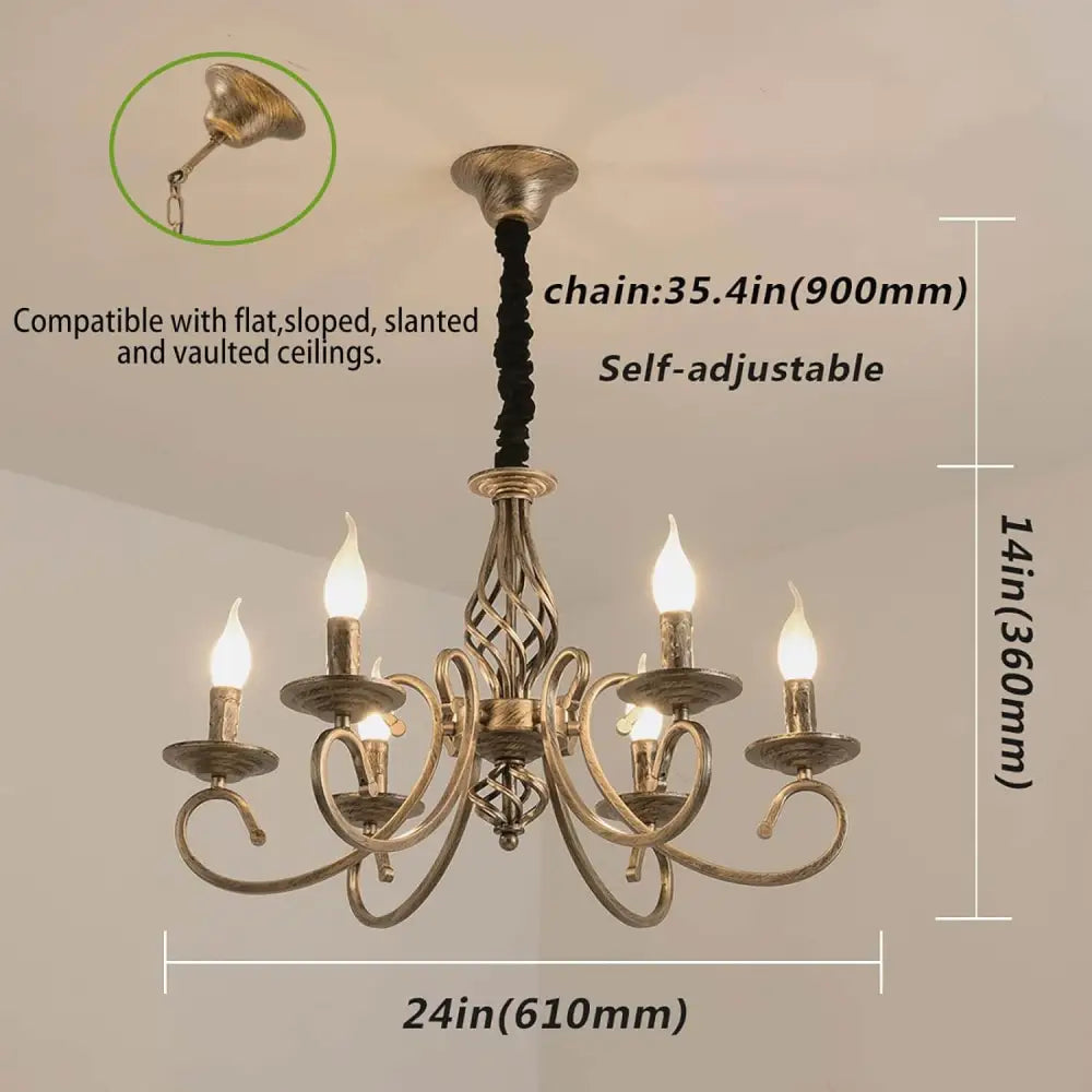 - This French Country-style chandelier will add sophistication to your room ambience, creating a warm, cozy and inviting atmosphere. Its unique design combines a traditional silhouette with an openwork body crafted from rustic Bronze metal finish and a series of curving arms enhanced, making it an eye-catching addition to any space.