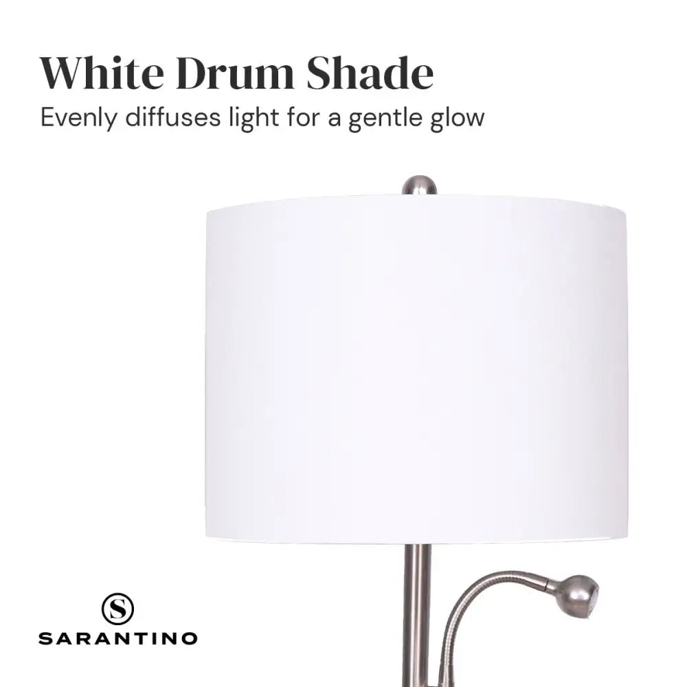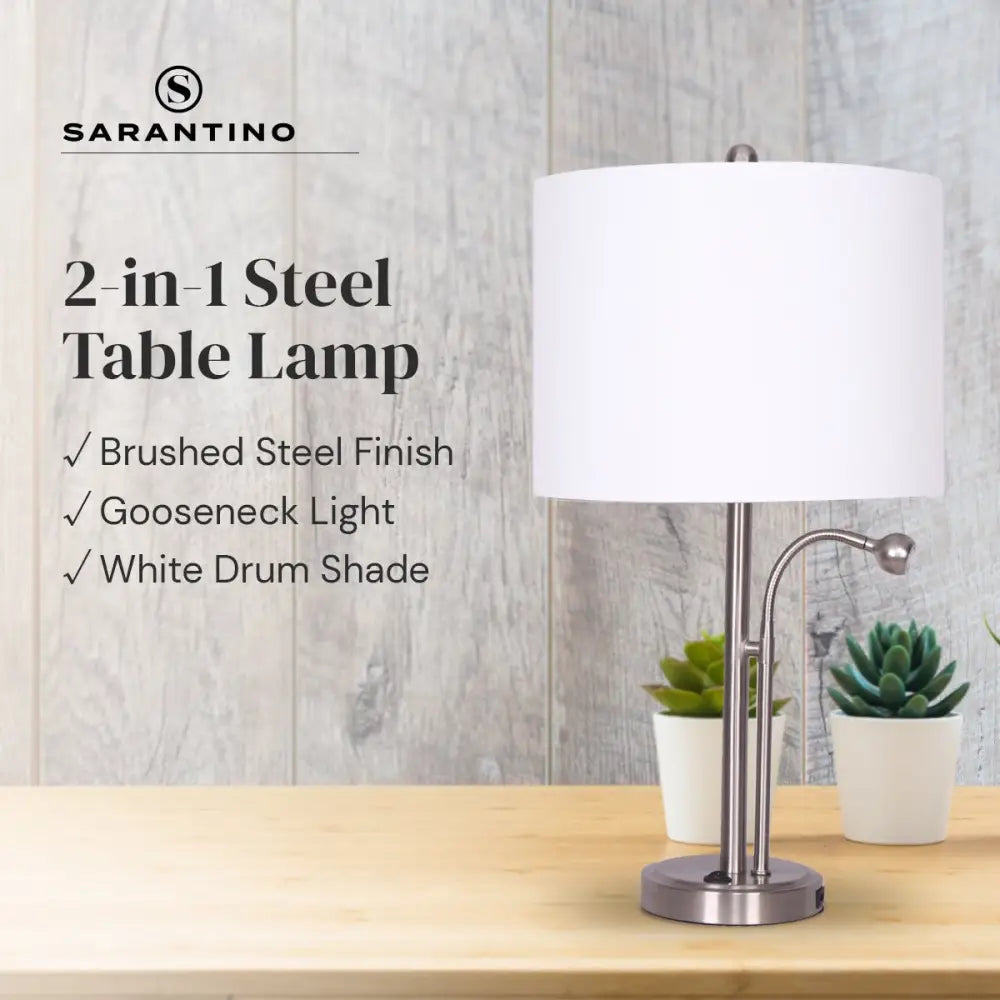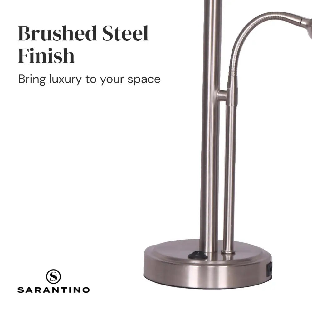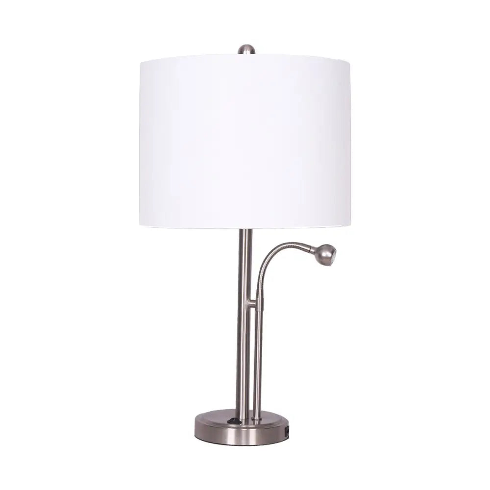This brushed steel table lamp has a gorgeous, modern design that looks great in any room. The mother-daughter style features ambient light and a functional reading lamp to accommodate a variety of uses. The contemporary styling makes this piece a perfect match for any dorm, living room, apartment, bedroom, office, kids room, foyer or home theatre.