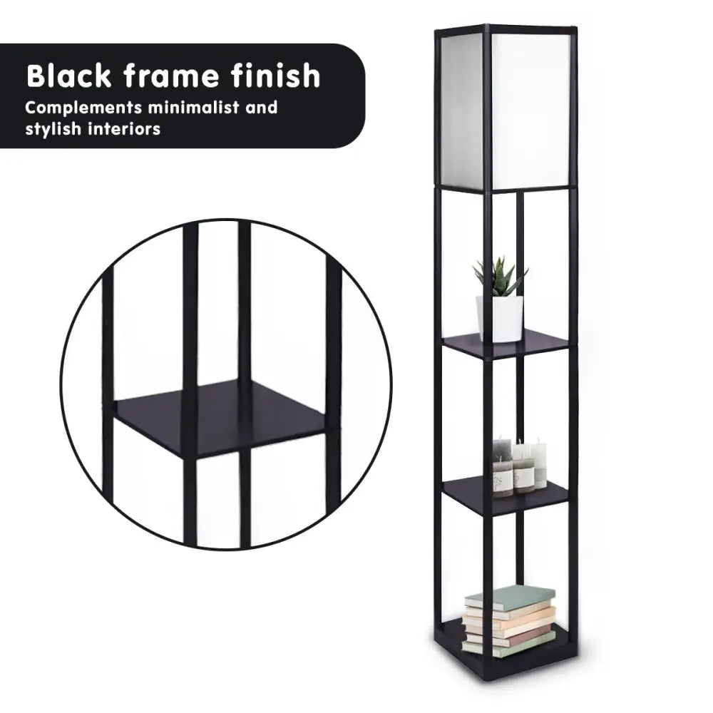 Sarantino Etagere Floor Lamp Shelves in Black Frame Fabric Shade