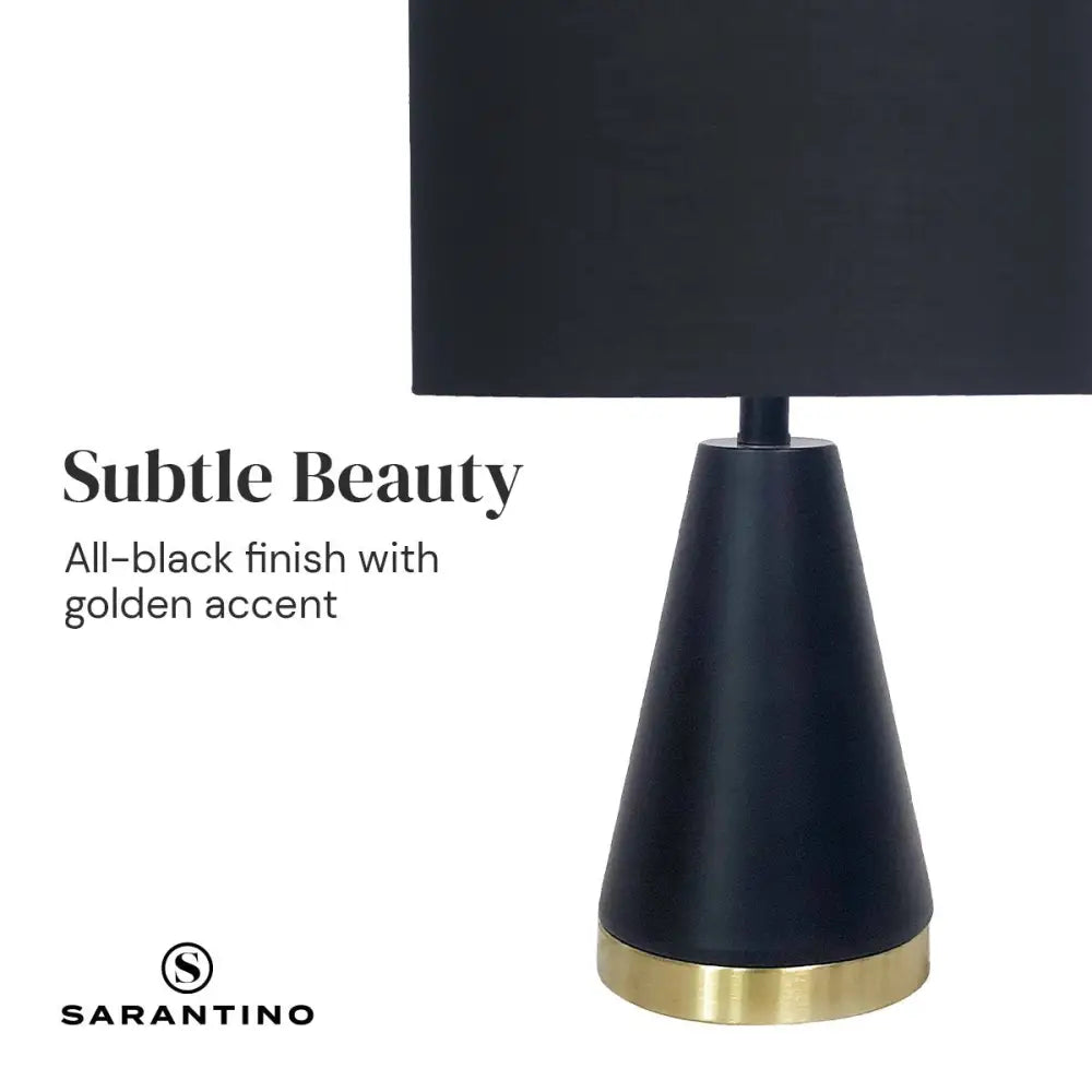 This table lamp, featuring a black and gold tapered metal base, securely stands on any surface or tabletop. It is a luxurious and elegant decor piece that will complement your space while adding illumination.