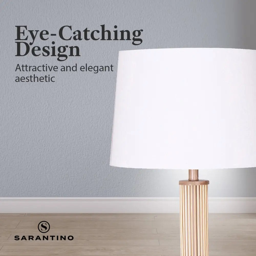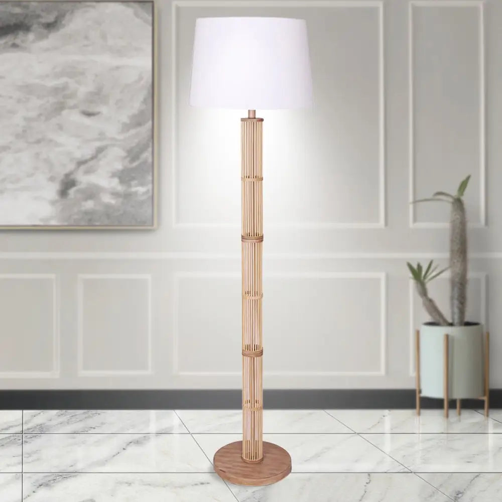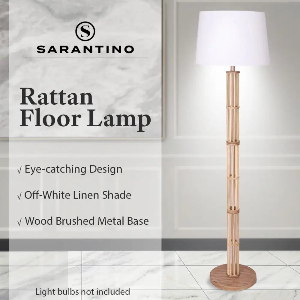 Sarantino Rattan Floor Lamp With Off-White Linen Shade by Sarantino