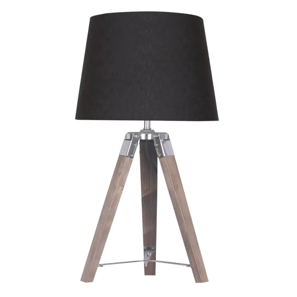 Sarantino Wooden Tripod Table Lamp With Black Taper Fabric Shade
