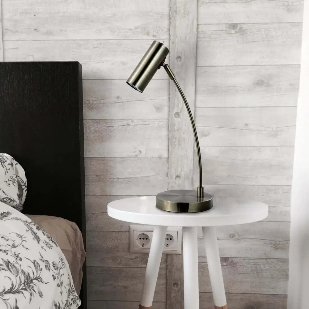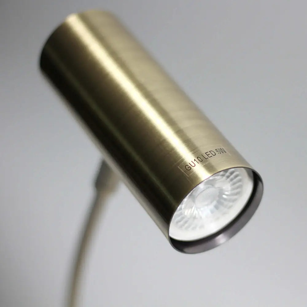 The cylinder lamp head holds a GU10 light to deliver direct lighting and can be adjusted to aim to suit the lighting needs. The Sarla Table Lamp is an excellent option for a desk to help with work productivity or a bedside table for ample reading light. The switch is situated at the back of the lamp head for easy accessibility.