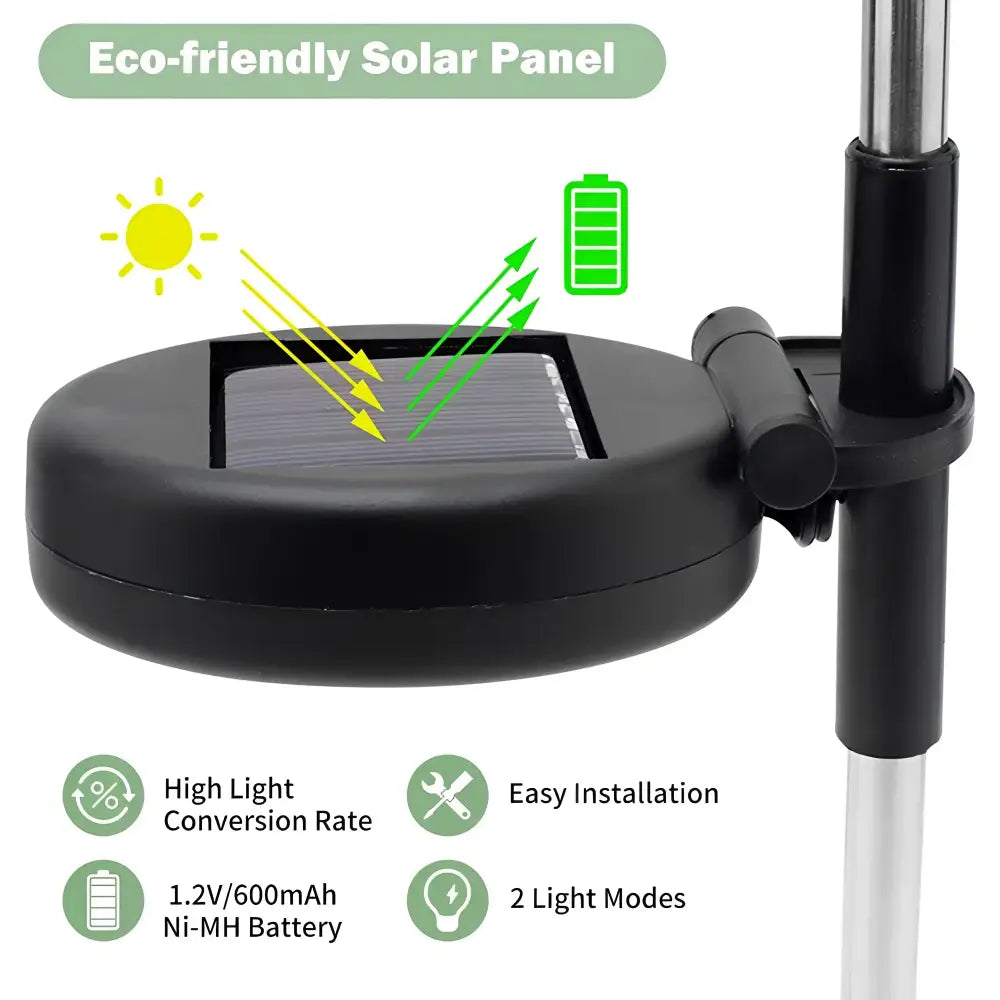 Powered by a high-efficiency solar panel with a built-in 1200mAh rechargeable battery, these lights charge throughout the day and illuminate automatically at night for 8 to 12 hours—all without the need for power cords. With IP65 waterproof protection, they withstand various weather conditions for reliable outdoor use.