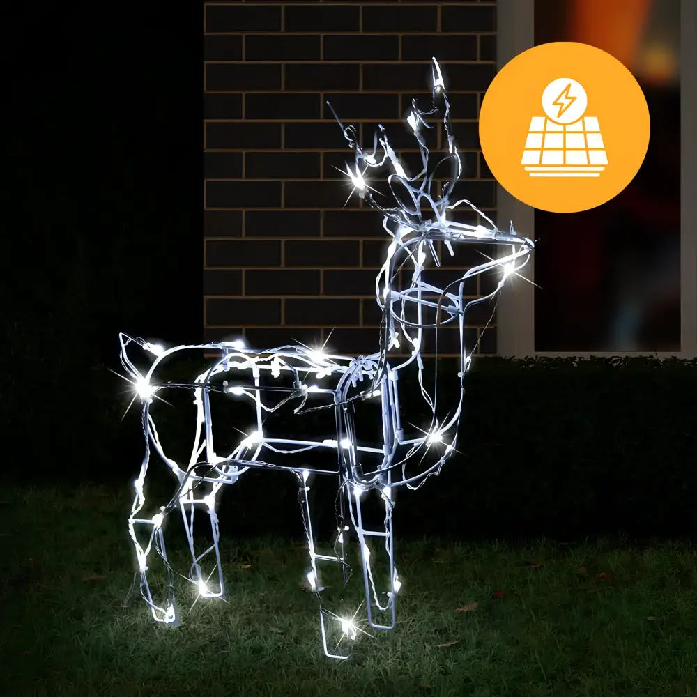 Add a touch of magic to your holiday decorations with the Solar Standing 3D Reindeer. Standing at 60 x 54 x 17 cm, this charming reindeer features 50 bright LED bulbs that create a festive glow in your outdoor space. The reindeer easily folds out into shape for quick and hassle-free setup. Whether flashing or steady, this solar-powered decoration is perfect for creating a cheerful atmosphere during the holiday season.