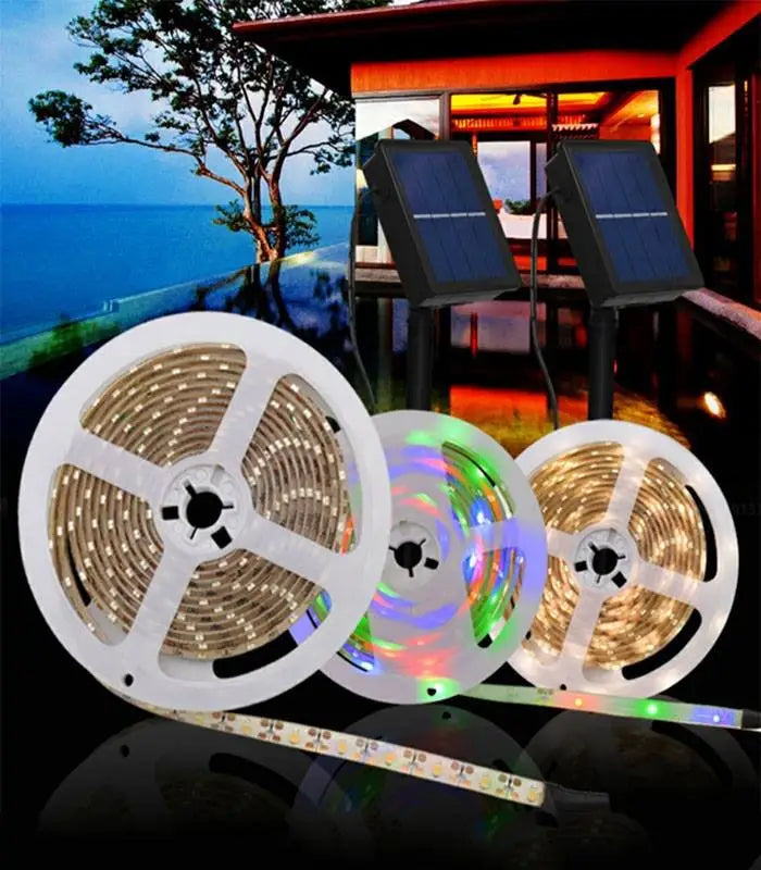 Waterproof Solar LED Strip Light ; 3-meters Long with Self-Adhesive