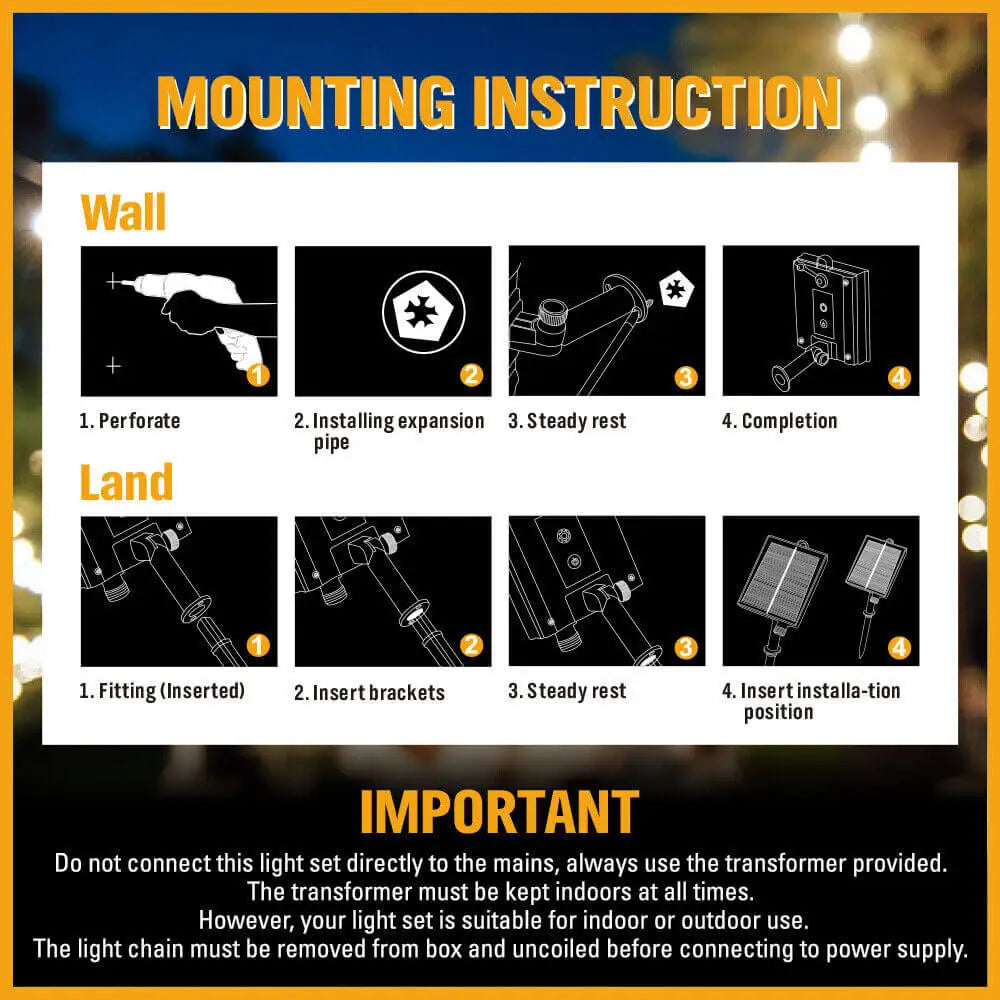1x 18.2M Solar string lights(with Solar powered, 15bulbs+1spare bulb)