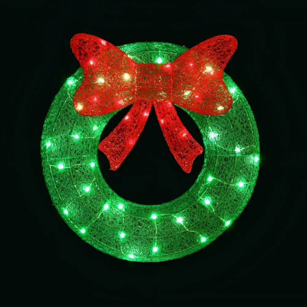 60cm Green LED Motif Solar Wreath Christmas Decorations
