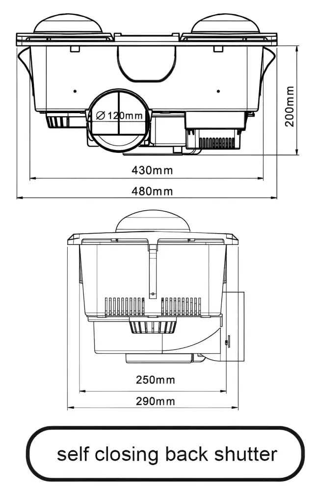 - Overall: L480mm x 290mm x H200mm