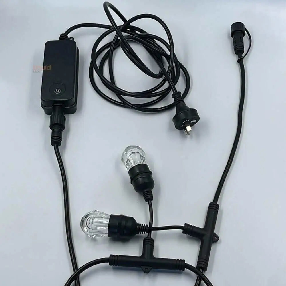 15m Black Smart Festoon String Lights with 15 LED Bulbs Plug in Kit