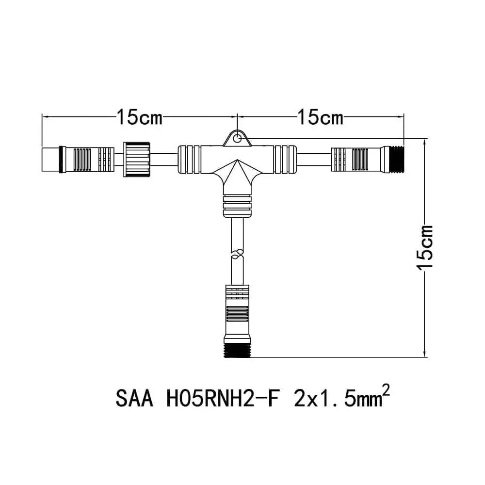 Compatible with our 240V and 24v Festoon String, use this 2-Way T-Shaped Splitter to connect 2 separate lengths of festoon strings together, so you can have more than one length of festoon strings on a single dimmer for an enhanced festoon string display. This one has an IP65 rating, perfect for outdoor use due to being guaranteed water-proof and weather proof.