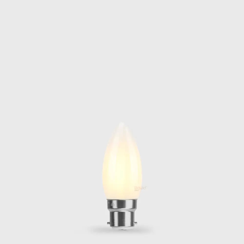Experience the perfect blend of timeless design and modern efficiency with the 4W Candle C35 Dimmable LED Light Bulb B22 Frost in Warm White.