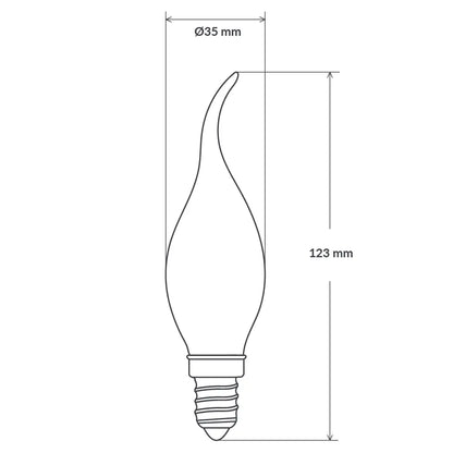 With its distinctive frosted-finished enclosure with a flame-shaped tip, the 4-watt Frosted Flame Tip Candle LED Filament Light Bulb (E14/Small Edison Screw Configuration) in Natural White 4000 Kelvin is an elegant lighting solution that combines the aesthetic appeal of the classic light bulb with 21st LED lighting technology.