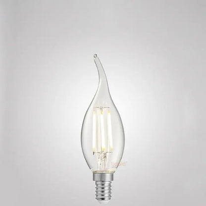 Experience the perfect blend of timeless design and modern efficiency with the 4W Flame Tip Candle C35T Dimmable LED Light Bulb E14 Clear in Natural White.