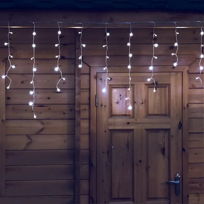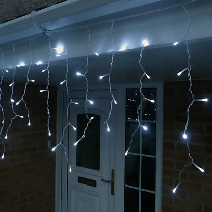 500 Solar Icicle LED Fairy Lights 8 Function Memory Hold Christmas Decoration Cool White