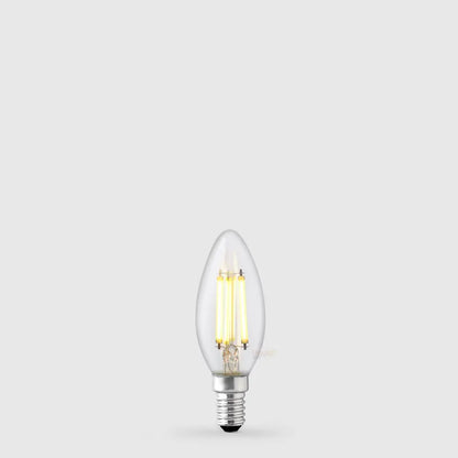 The 5.5W Candle C35 Dimmable LED Bulb E14 Clear pairs traditional candle-style charm with modern LED performance. Delivering a warm white glow at 2700K, this bulb is ideal for creating a welcoming atmosphere in decorative fittings, without compromising brightness or efficiency.