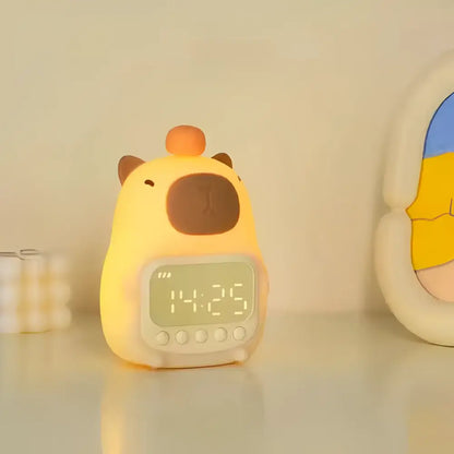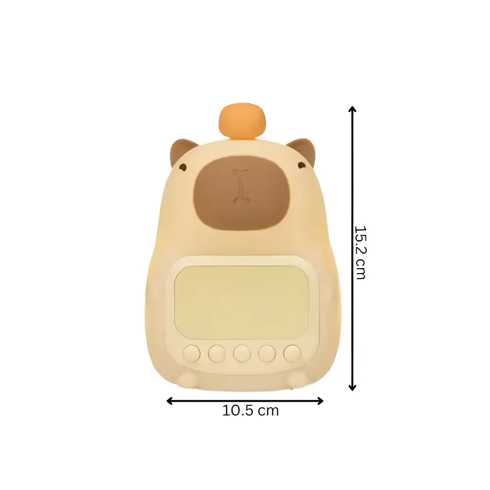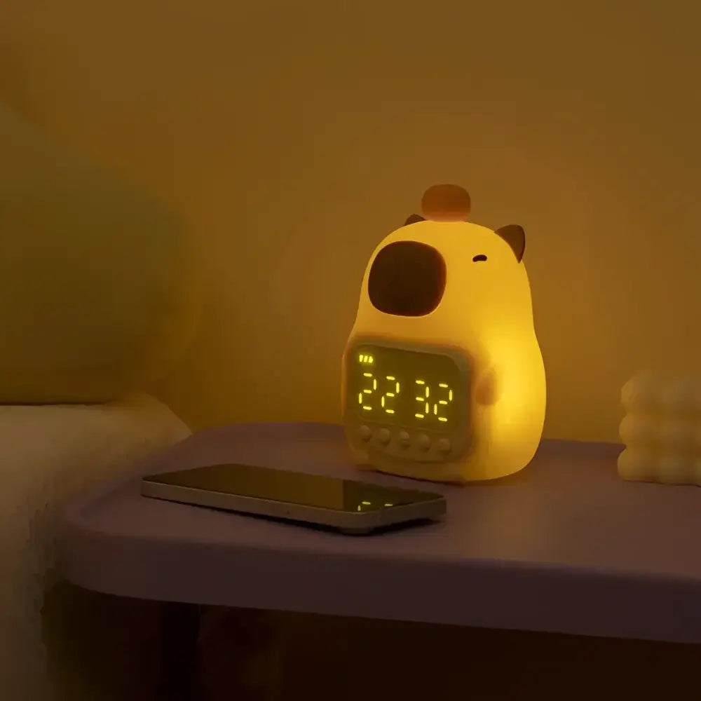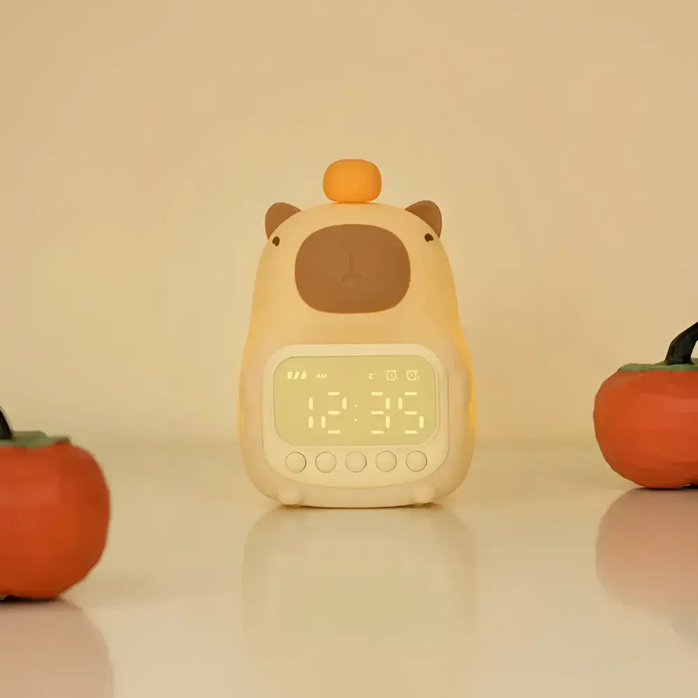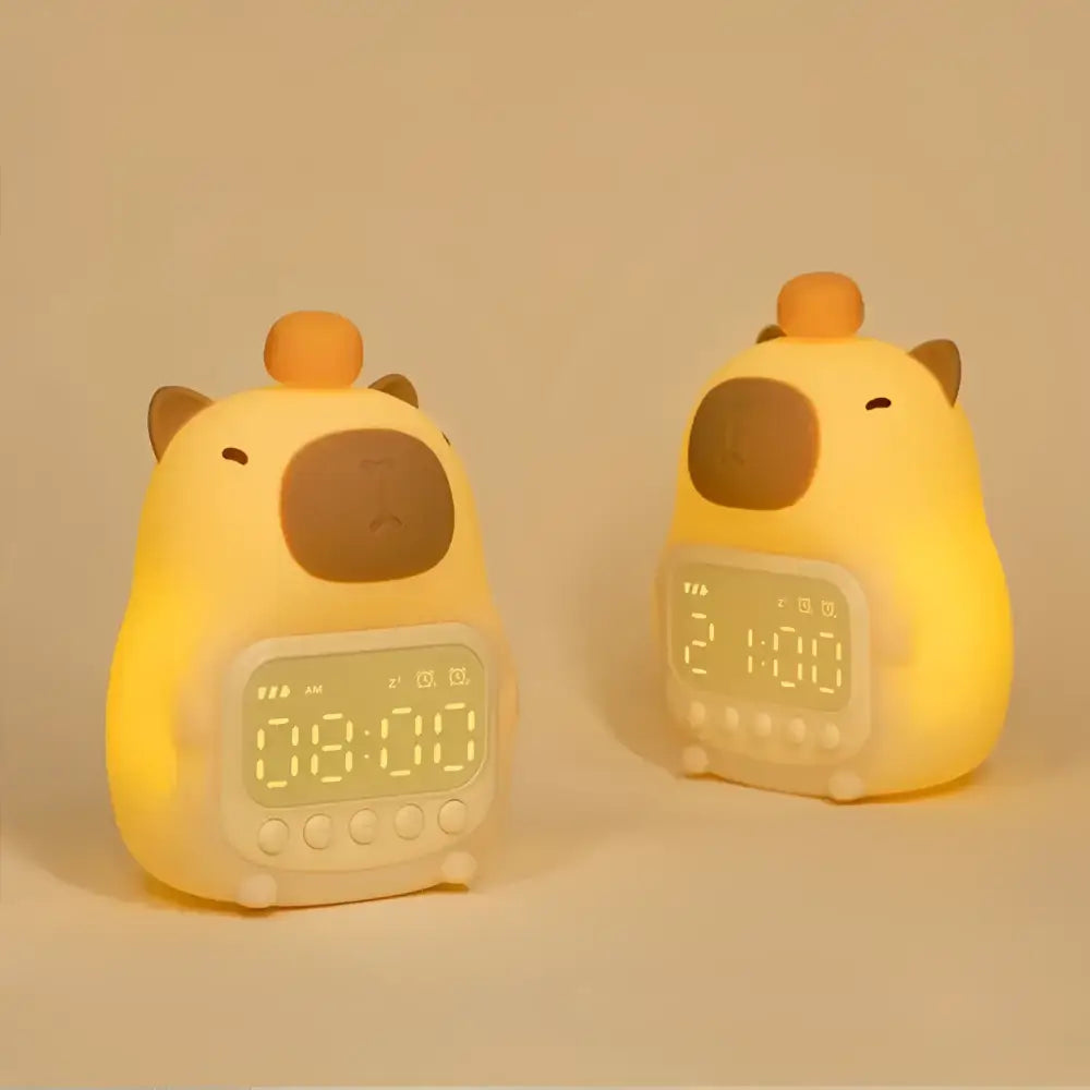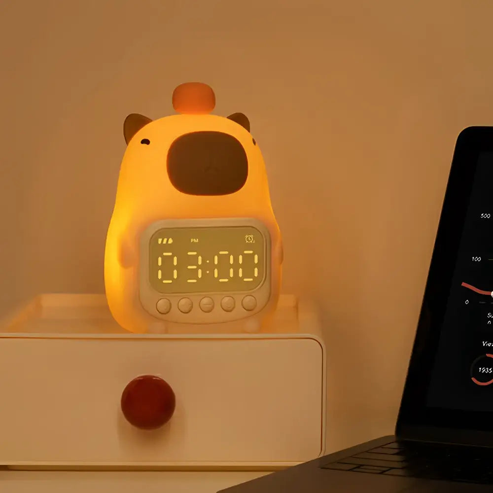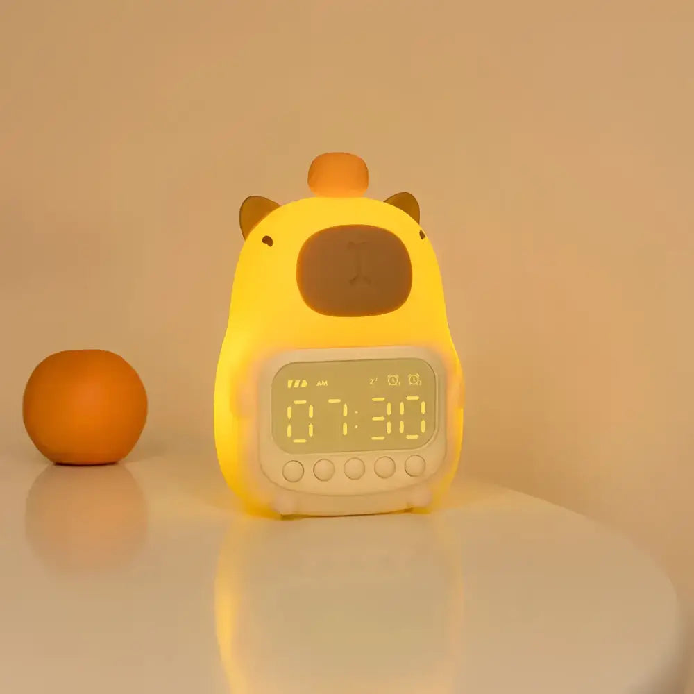 The Capybara Night Light is an adorable and functional addition to any child's bedroom, combining a playful design with a practical alarm clock. Its charming capybara shape and soft lighting create a warm and welcoming atmosphere, making bedtime more enjoyable for kids.