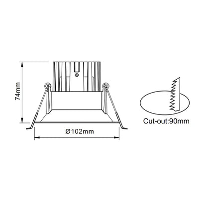 Cut-Out: 90mm | Diameter: 102mm | Height: 74mm