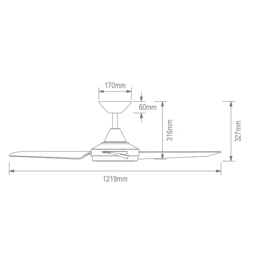 📐 Dimensions: Ø1219mm | Ceiling to Blades: 327mm