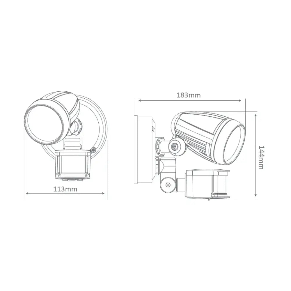 Domus MURO-13S - Twin Pack 13W LED Single Head Exterior Spotlight With Sensor Silver