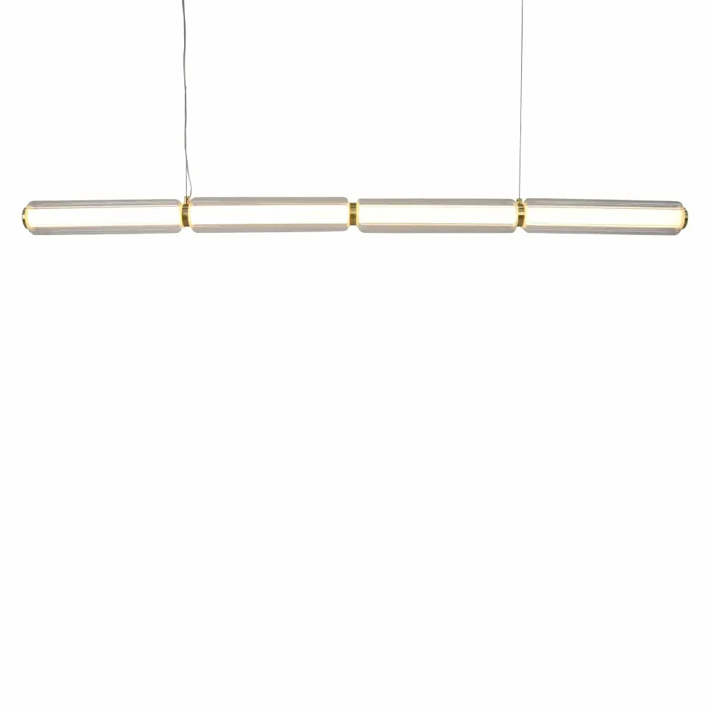 Elevate your interior with the Elara Linear LED Pendant, a perfect fusion of modern design and luxurious detail. Featuring a gold iron base, paired with frosted acrylic and glass shades, this pendant light delivers both striking aesthetics and exceptional performance. Its warm 3000K light output provides a welcoming glow that enhances dining rooms, kitchen islands, and contemporary living areas.