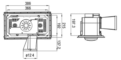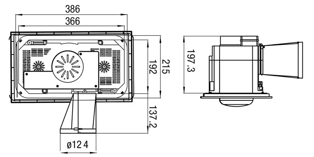 • Unit dimensions: 386mm (L) x 215mm (W) x 197mm (H)