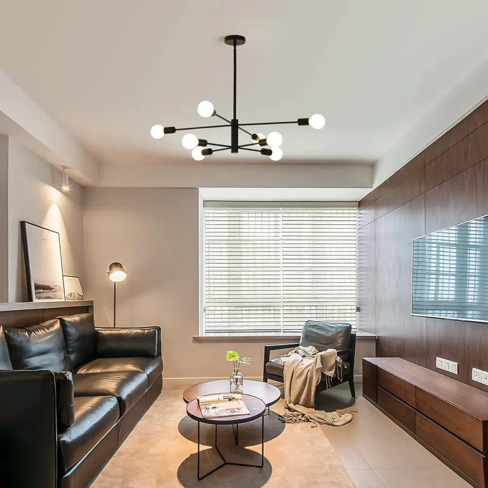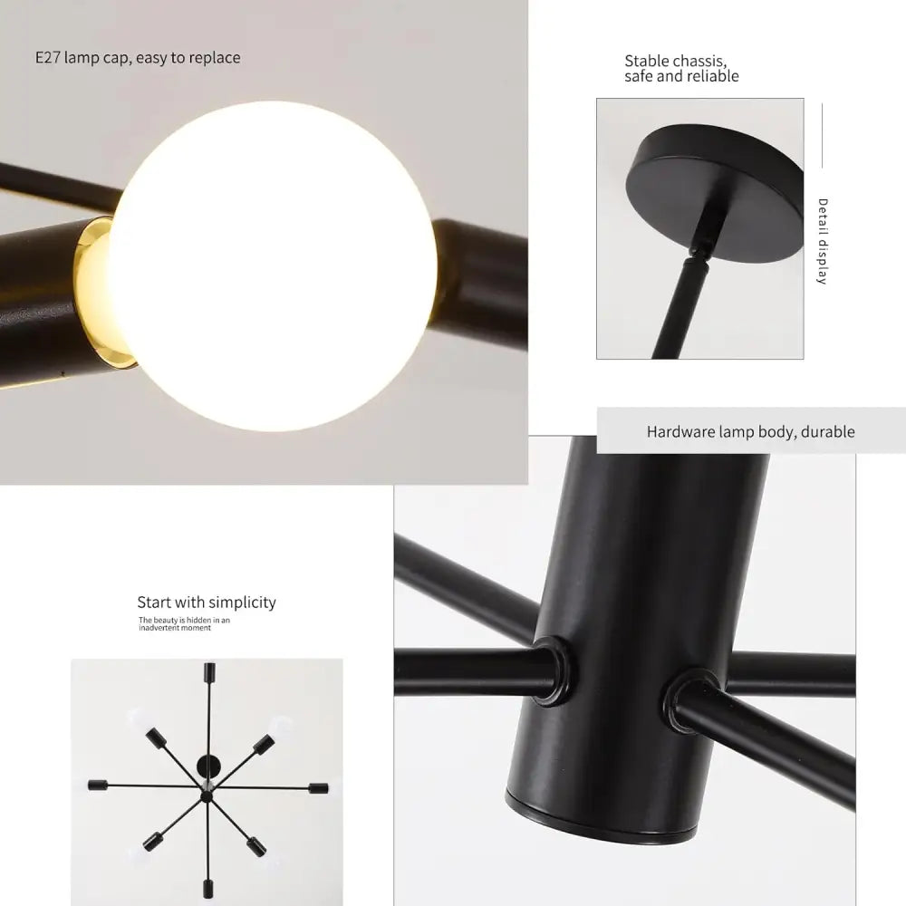 - This sputnik-style chandelier is the perfect light for any home. Its modern and luxurious design, with golden copper and black painted metal details, adds a hint of fashion to any space. Enjoy the combination of modern minimalism and luxury style with this beautiful pendant lighting.