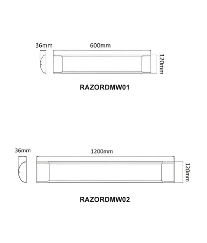 RAZORDMW Interior LED Surface Mounted Dimmable Tri-CCT Wide Batten 36W 1200mm - RAZORDMW02