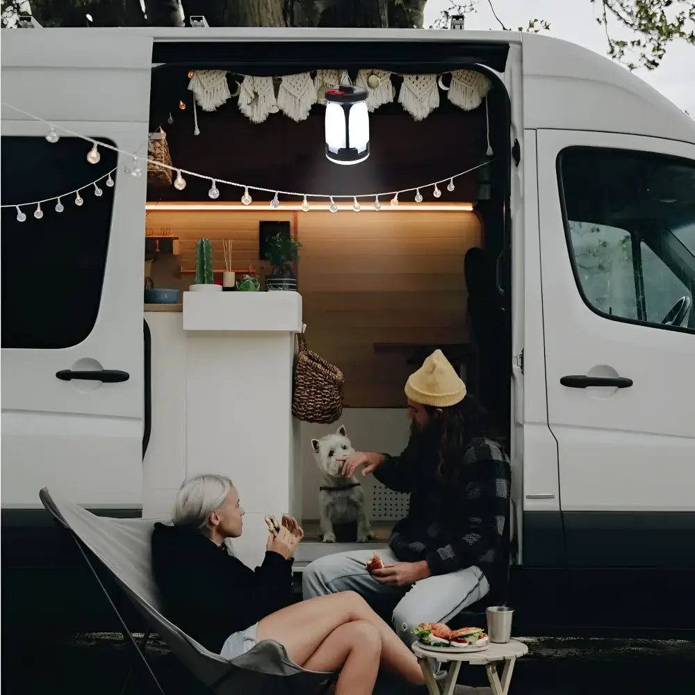 This camping light features two charging methods: USB and solar. The solar charging panel is ideal for use both indoors and outdoors, eliminating concerns about finding a power source. The built-in large-capacity lithium battery also functions as a mobile power bank, ensuring your devices remain charged during outdoor activities.